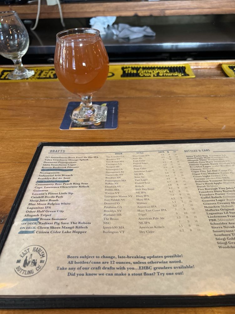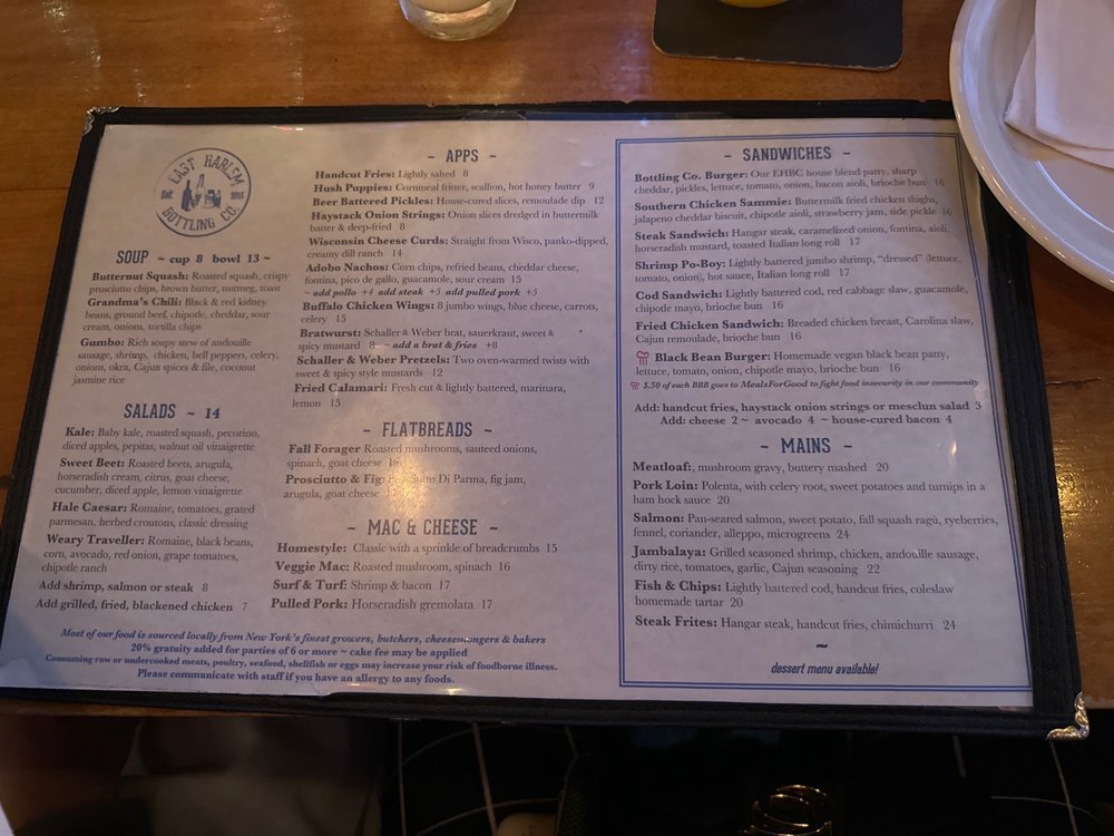 East Harlem Bottling is a trendy beer bar in New York's Harlem, offering a diverse menu with American breakfast and brunch options. This women-owned establishment caters to a range of preferences, from hearty burgers to flavorful salads. The menu features creative dishes like Bang Bang Cauli and Wisconsin Cheese Curds, along with classic favorites like the Bottling Co Burger and Southern Chicken Sammie. Customers praise the friendly service and delicious offerings, with standout items including the Passionfruit white sangria and the chicken biscuit sandwich. The atmosphere is casual and welcoming, perfect for a laid-back meal or a night out with friends. Don't miss the opportunity to try the signature wings and enjoy the extensive beer selection. East Harlem Bottling truly has something for everyone, making it a must-visit spot in the neighborhood.